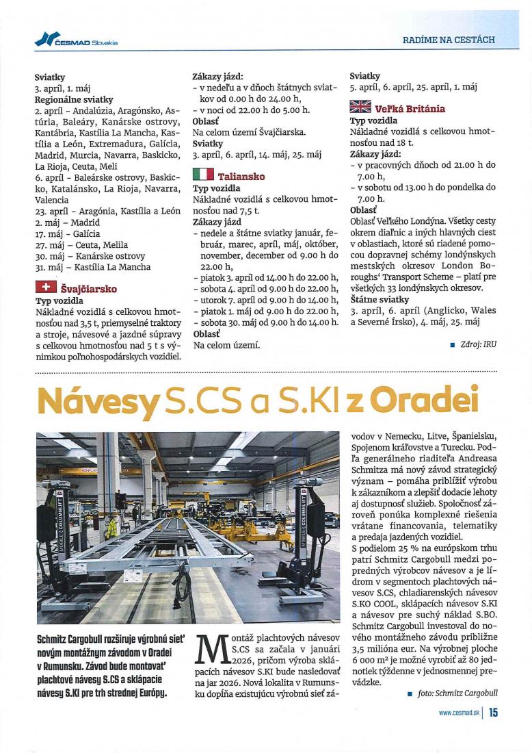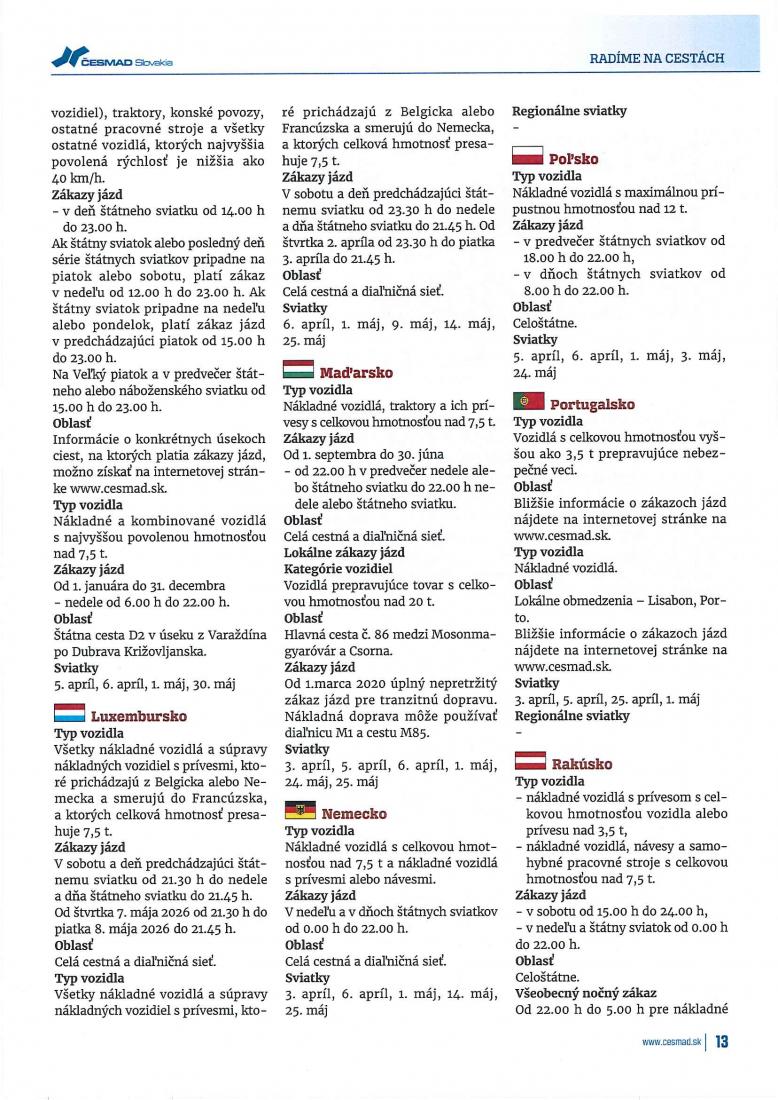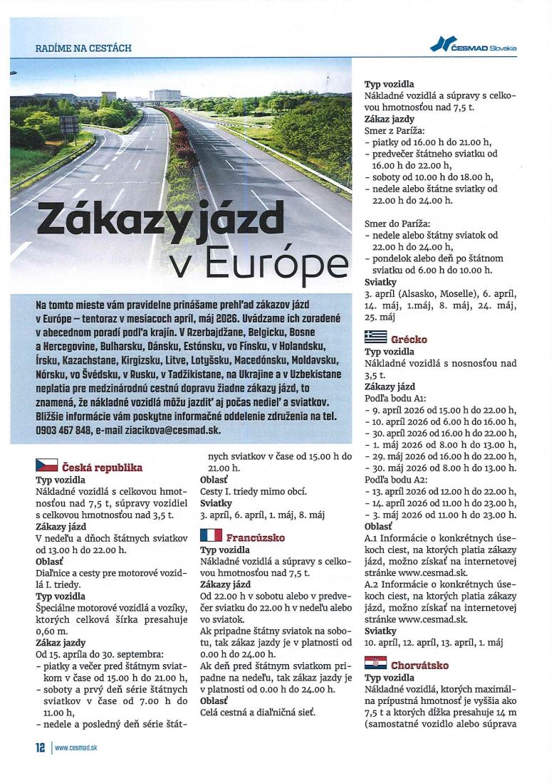 Zákazy jázd v mesiacoch apríl a máj.